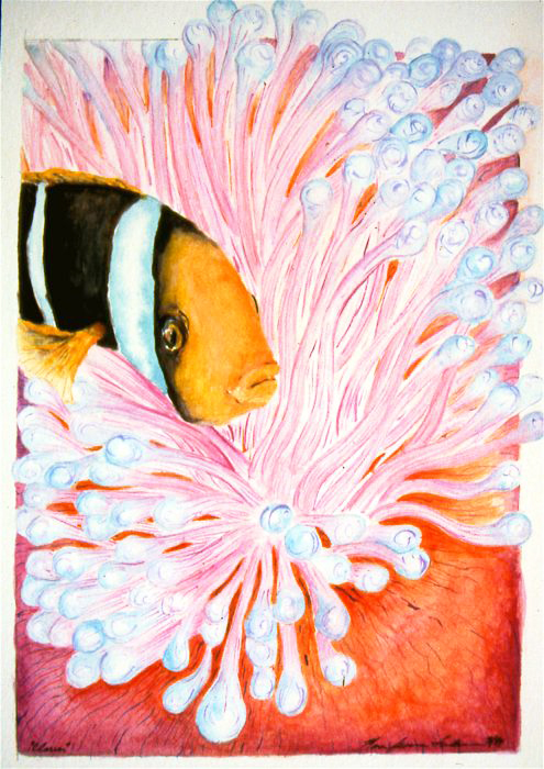 Clown & Anemone • watercolor • 8″x10″