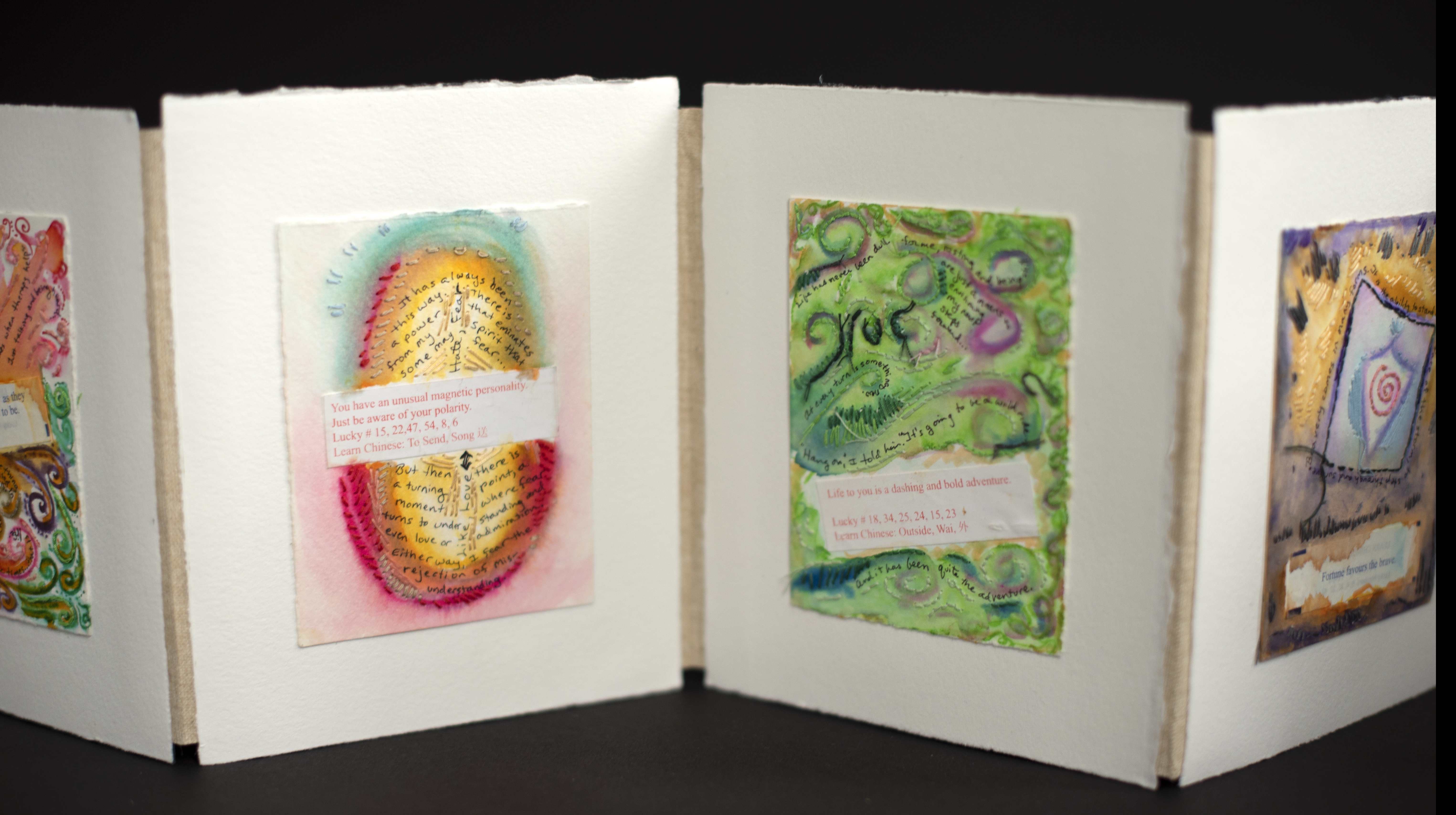 Three accordion books with slipcase.
