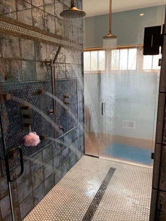 The shower with all fixtures operating!