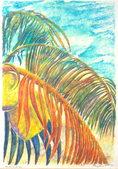 Palm Leaves & Sea Waves • Double-Plate Monoprint • 18″x24″